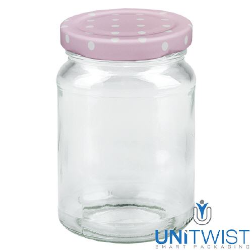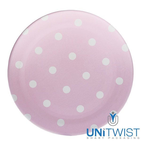 Ronde pot Runda205 met stippen/roze BasicSeal twist-off deksel (TO58)