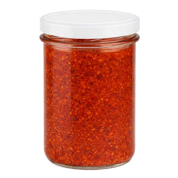 - Toepassing deksel: Laat bij het inblikken voldoende luchtruimte boven de inhoud (ca. 7%, twee vingerbreedtes) en warm goed op voordat je het deksel dichtschroeft, zodat de afdichting elastisch wordt. Meer informatie hierover vind je in de meegeleverde instructies.