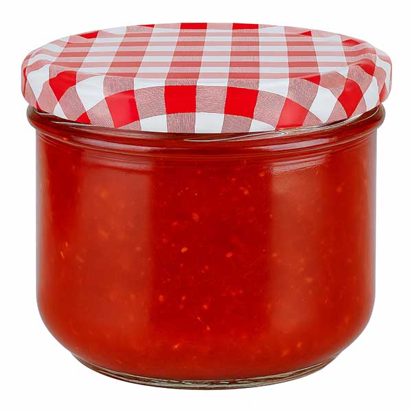 - Toepassing deksel: Laat bij het inblikken voldoende luchtruimte boven de inhoud (ca. 7%, twee vingerbreedtes) en warm goed op voordat je het deksel dichtschroeft, zodat de afdichting elastisch wordt. Meer informatie hierover vind je in de meegeleverde instructies.