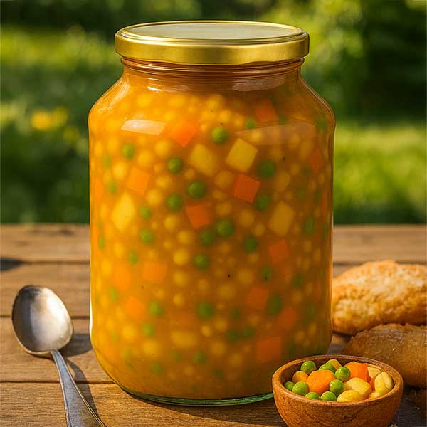 - Toepassing deksel: Laat bij het inblikken voldoende luchtruimte boven de inhoud (ca. 7%, twee vingerbreedtes) en warm goed op voordat je het deksel dichtschroeft, zodat de afdichting elastisch wordt. Meer informatie hierover vind je in de meegeleverde instructies.