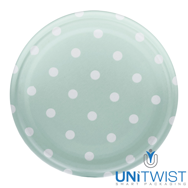- Kleur: deksel met mintkleurige stippen, afdichting wit