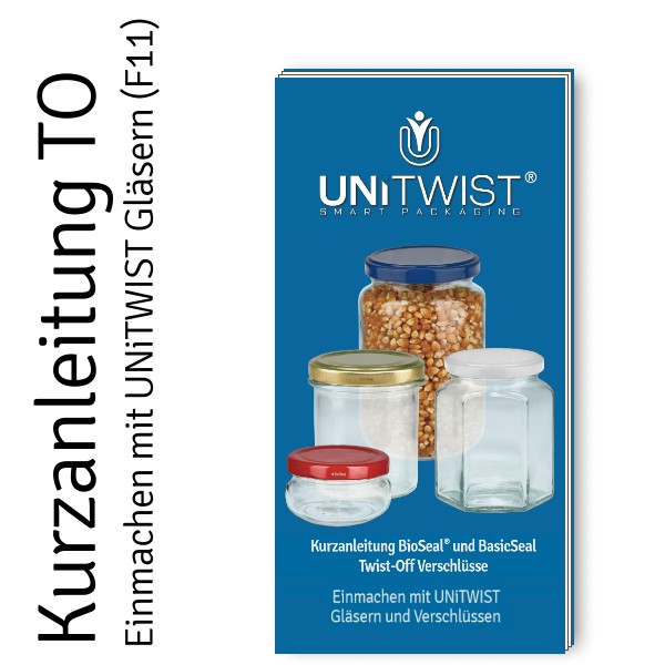 Het Twist-Off “TO” matensysteem: Er zijn verschillende glazen openingen: TO48, TO53, TO63 enz. De aanduidingen bestaan uit de letters “TO (=Twist Off)” plus de diameter in mm. Voorbeeld TO48: dit betekent een twist-off-systeem met een opening van 48 mm. Daarnaast zijn er af en toe dubbel zo hoge “Deep”-deksels. Bij het samenstellen van UNiTWIST Twist-Off-glazen en deksels moeten de ‘TO’-waarden en eventueel de aanduiding “DEEP” overeenkomen - dan past alles.