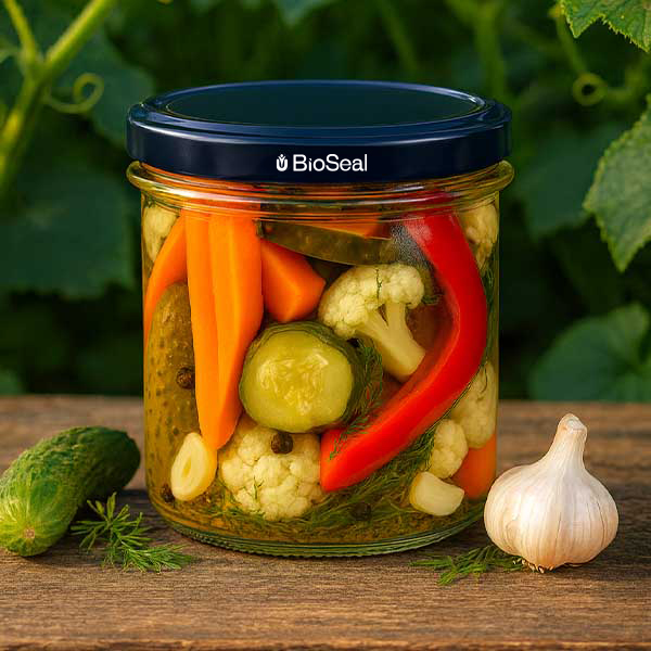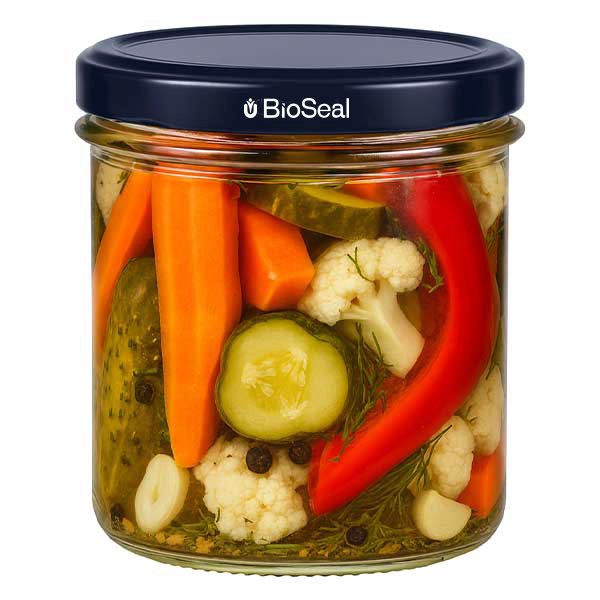 - Complete BioSeal deksels van UNiTWIST. Deze speciale deksels zijn PVC-vrij, weekmakervrij (ESBO) en hebben een BPA-vrije coating. Zelfs bij vettige/olieachtige inhoud is migratie van deze stoffen in de inhoud uitgesloten. Het gebruik van PVC-vrije BioSeal deksels wordt aanbevolen of voorgeschreven voor biologische producten.