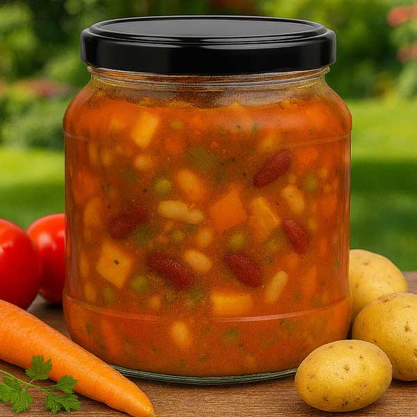 - Toepassing deksel: Laat bij het inblikken voldoende luchtruimte boven de inhoud (ca. 7%, twee vingerbreedtes) en warm goed op voordat je het deksel dichtschroeft, zodat de afdichting elastisch wordt. Meer informatie hierover vind je in de meegeleverde instructies.