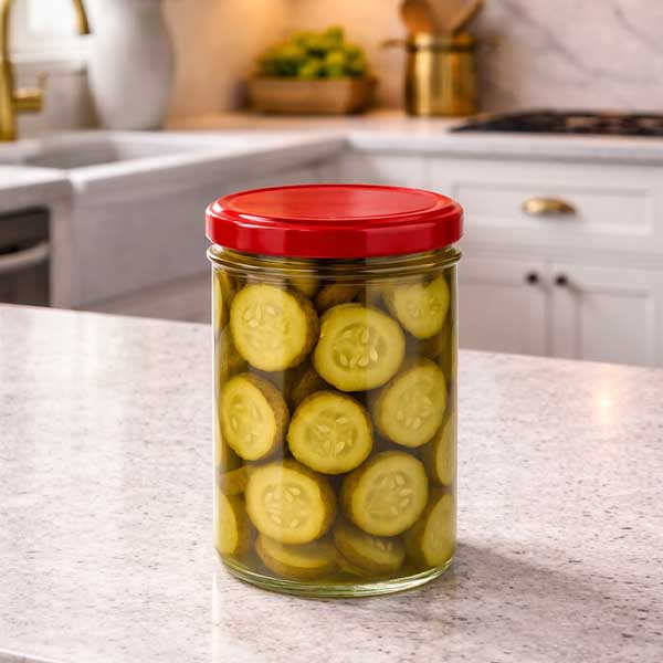- Toepassing deksel: Laat bij het inblikken voldoende luchtruimte boven de inhoud (ca. 7%, twee vingerbreedtes) en warm goed op voordat je het deksel dichtschroeft, zodat de afdichting elastisch wordt. Meer informatie hierover vind je in de meegeleverde instructies.