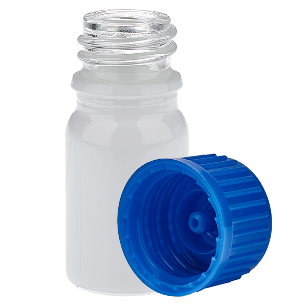 - Apothekersflesje met 18 mm schroefdraad (UT18). Compleet met schroefdop.