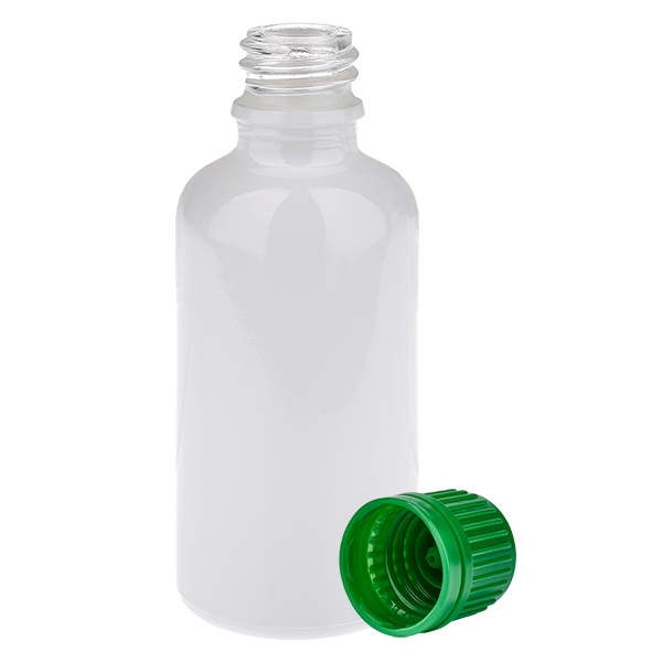 - Apothekersfles met 18 mm schroefdraad (UT18). Compleet met schroefdop.