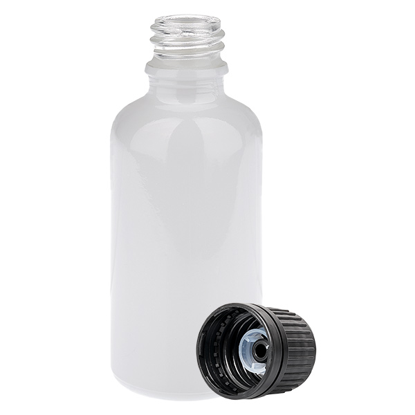 - Beschrijving van de glazen fles: Glassoort III (DIN 719 resp. recipiëntklasse III volgens DIN 52339-TO180). Helder glas wordt in een uitgebreid proces aan de buitenkant voorzien van een glanzend witte coating. Dit zorgt voor een hoogwaardige presentatie van de inhoud. U kunt het vulniveau van de fles zien. De inhoud wordt toch beschermd tegen direct zonlicht.