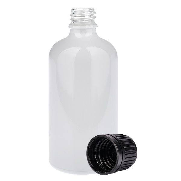 - Apothekersfles met 18 mm schroefdraad (UT18). Compleet met schroefdop.