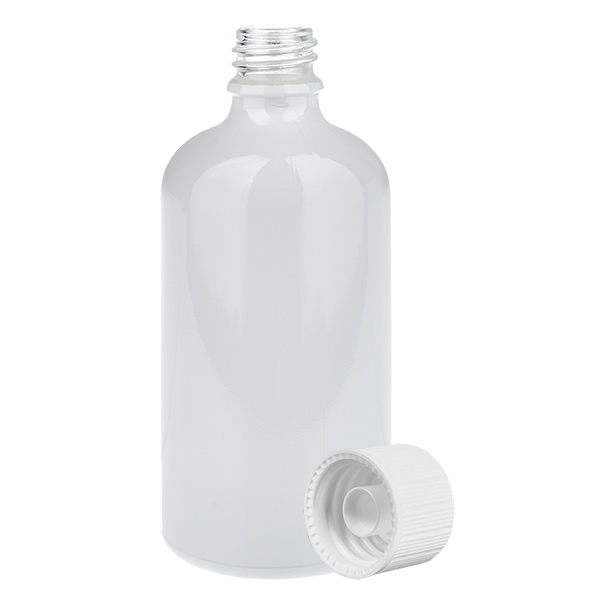 - Apothekersfles met 18 mm schroefdraad (UT18). Compleet met schroefdop.