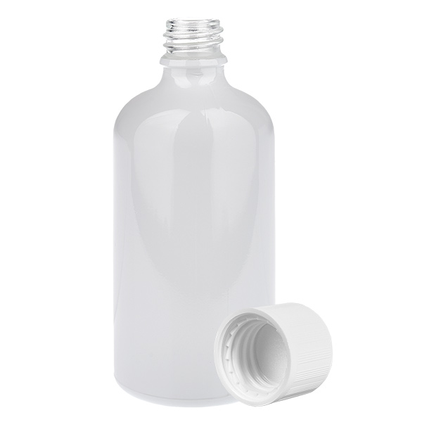 100 ml fles met witte standaard schroefdop & kindveilige sluiting (11 mm opening) WhiteLine UT18/100