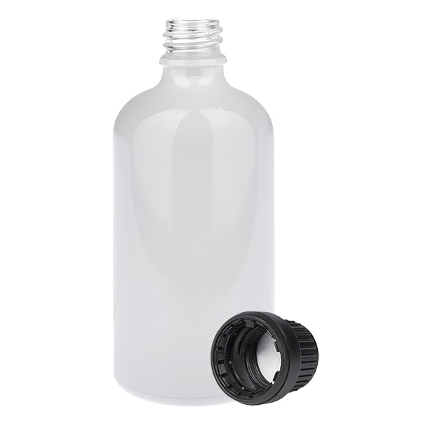 - Apothekersfles met 18 mm schroefdraad (UT18). Compleet met schroefdop.