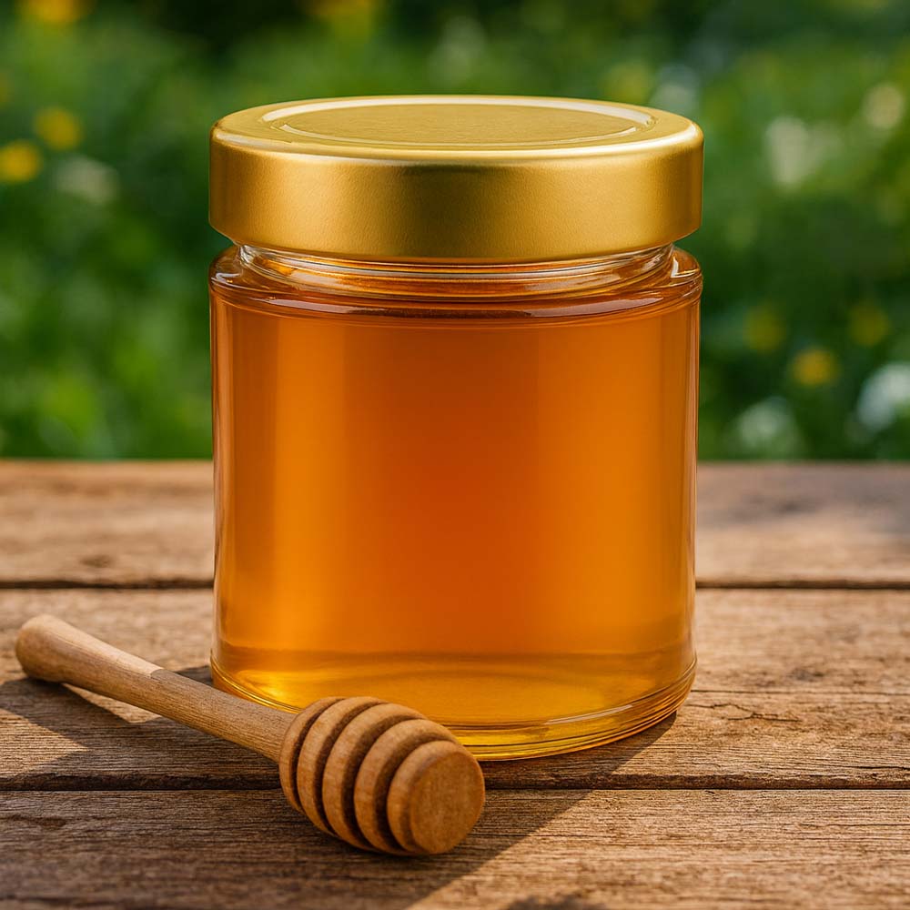 Stevige honingpot 200 g met gouden BasicSeal UNiTWIST-deksel – ideaal voor verkoop, geschenksets...