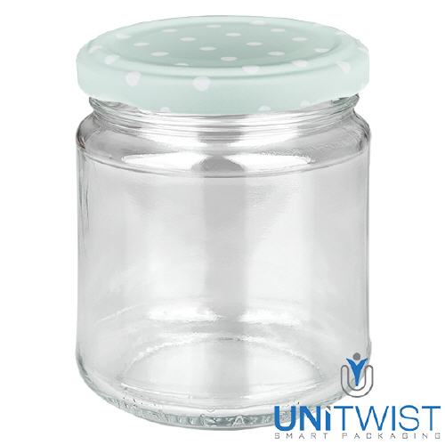 Bocal rond 212 ml + couvercle BasicSeal à pois menthe UNiTWIST®