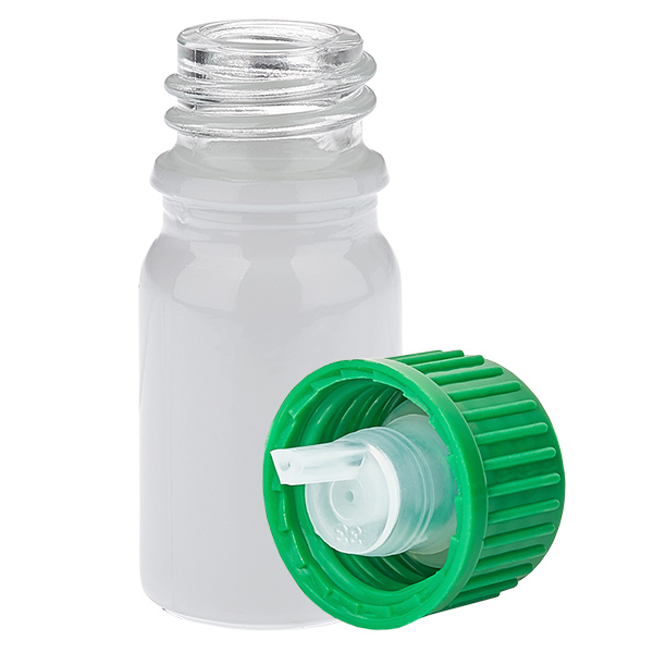 Flacon de 5 ml avec bouchon à vis standard vert (ouverture de 0,8 mm) WhiteLine UT18/5...plus